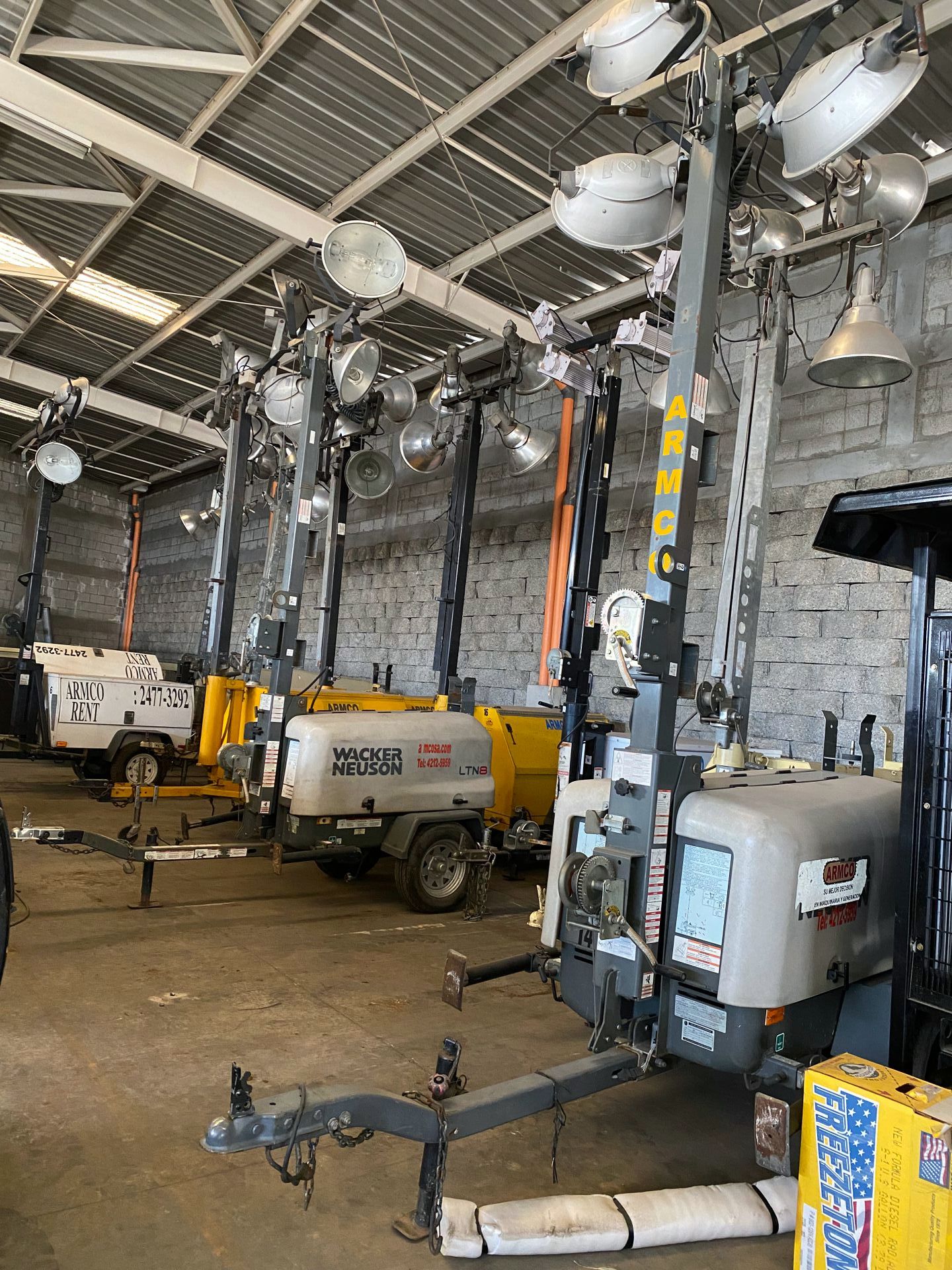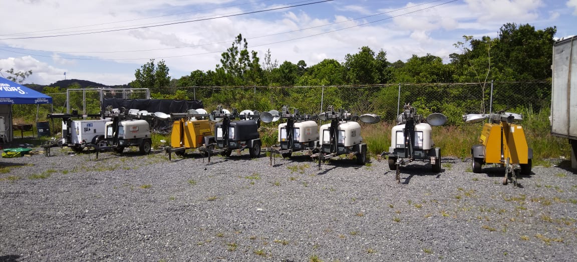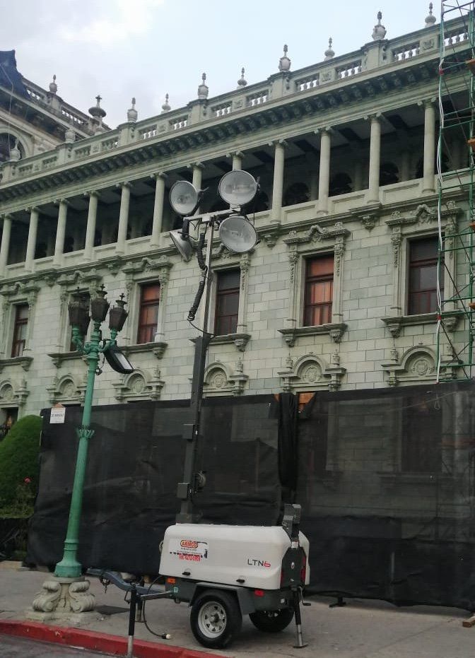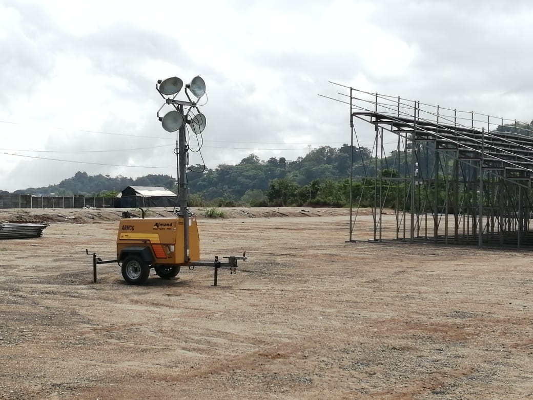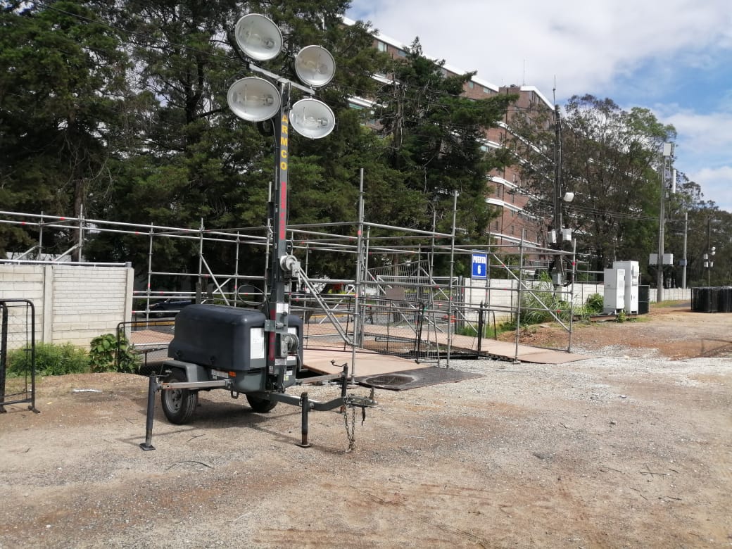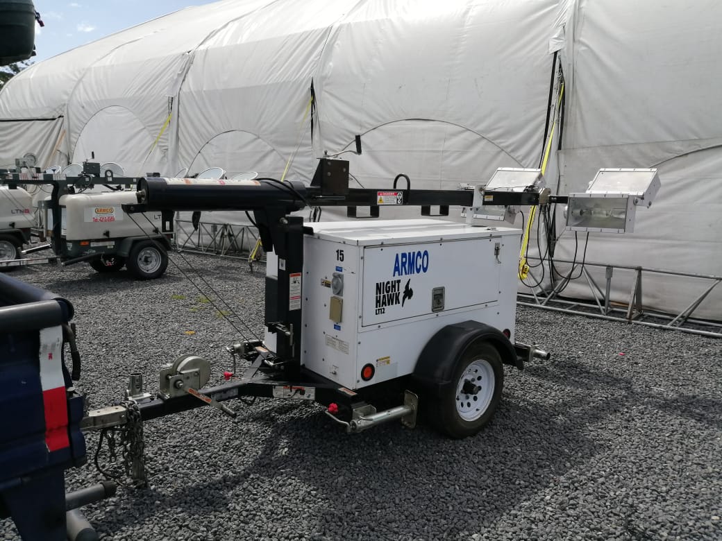 • Torres de iluminación para renta y venta, encabinadas con atenuador de ruido, con cuatro lámparas alógenas de luz blanca.